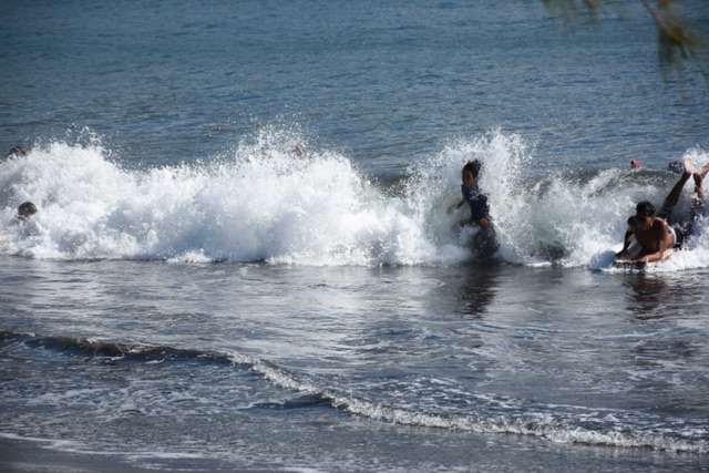 It’s a beautiful place. Waves crash in onto a black sandy beach. There are coconut palms, what the son of the lighthouse designer, Robert Louis Stevenson, called “the giraffe of vegetables”, breadfruit trees, and flowering tub-like bushes of hibiscus. There is the lighthouse, and the narrow spit of land which provides the point in question. People play in the surf, and offshore kite boarders zip between outrigger canoes and sailing dinghies.