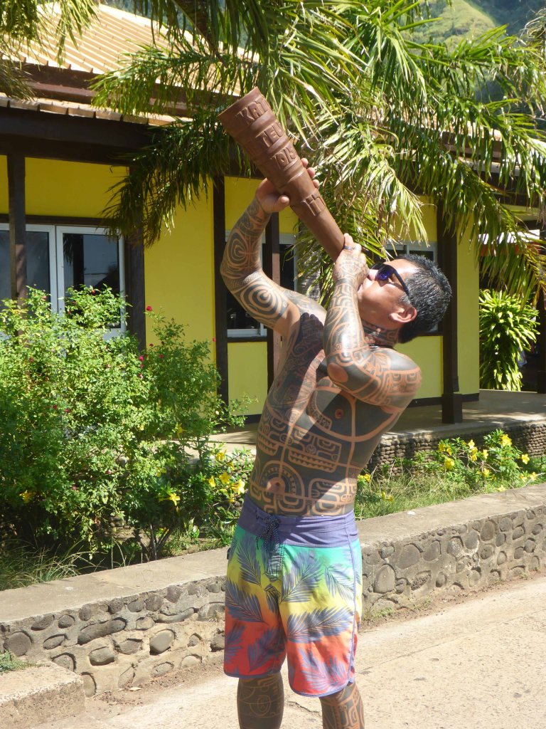 I remembered a welcome at one of the villages, where we visitors were entertained with traditional songs. The lead singer didn’t know the words, so he checked them on his iPhone. At another community, we were serenaded by a tattooed man blowing a large horn, a contemporary conch shell. He was wearing surfer shorts and designer sunglasses.